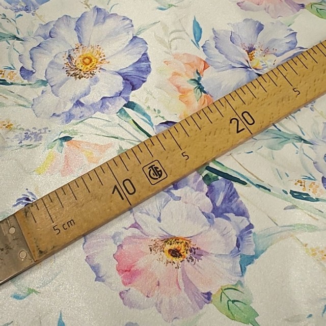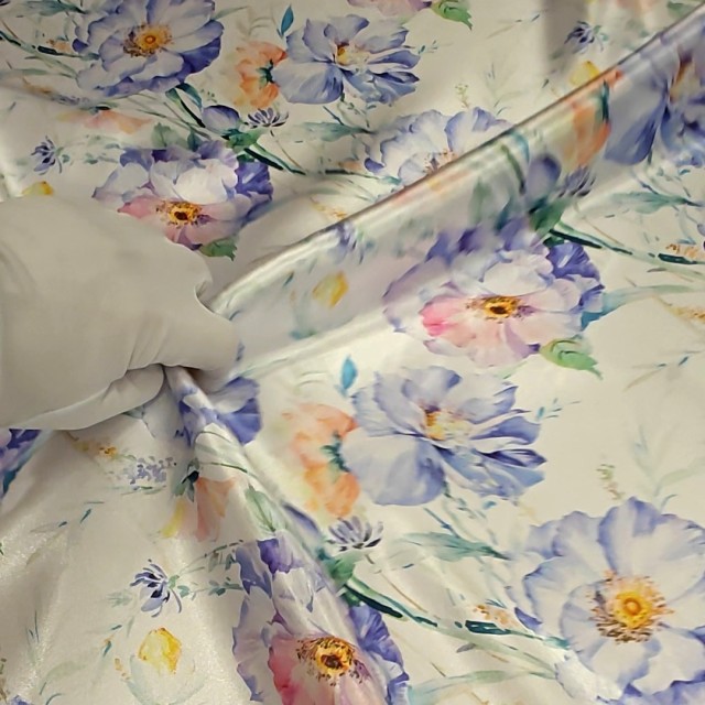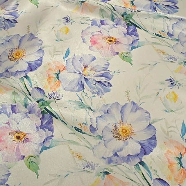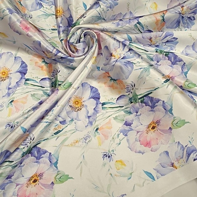 - Атлас с блеском Кристалл с акварельными цветами для пошива платьев