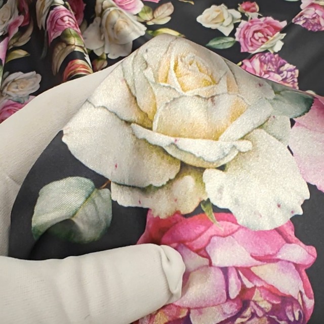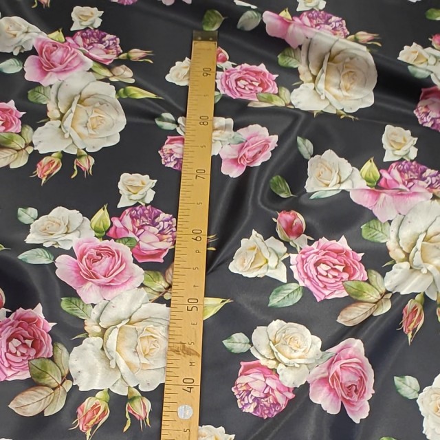 • Атлас с блеском Кристалл с красивыми розами для пошива платьев
