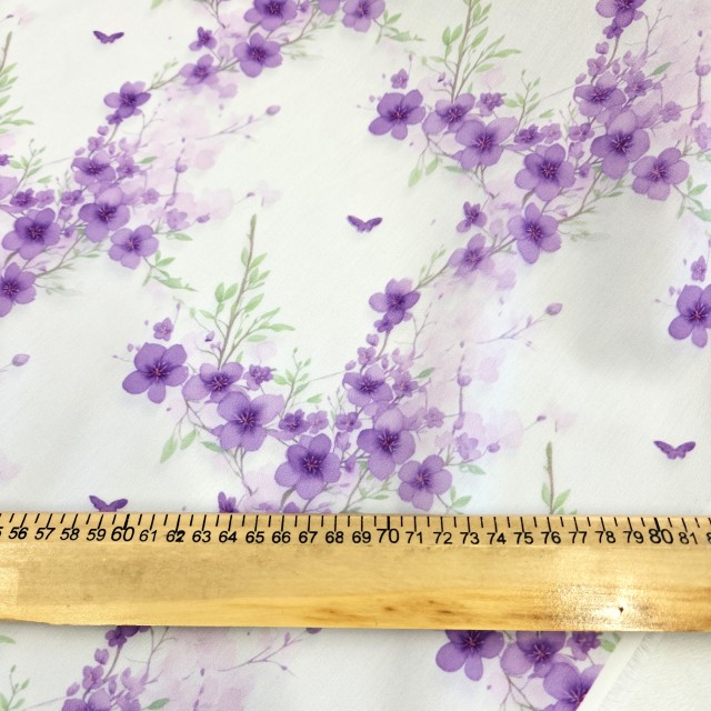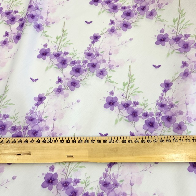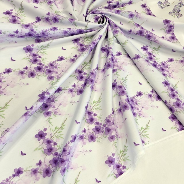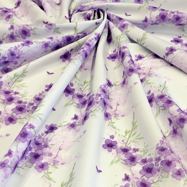 • Плательный поплин с акварельными фиолетовыми цветами для пошива модных платьев