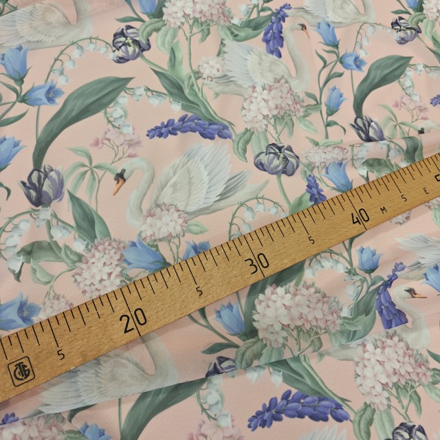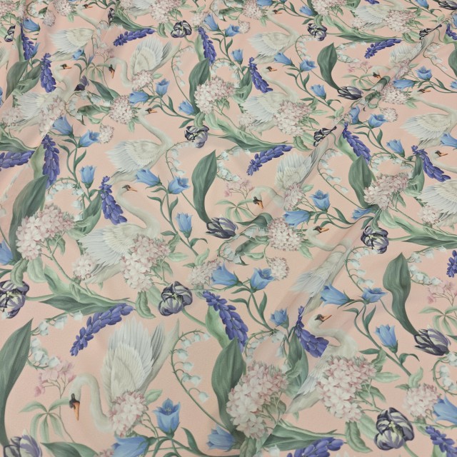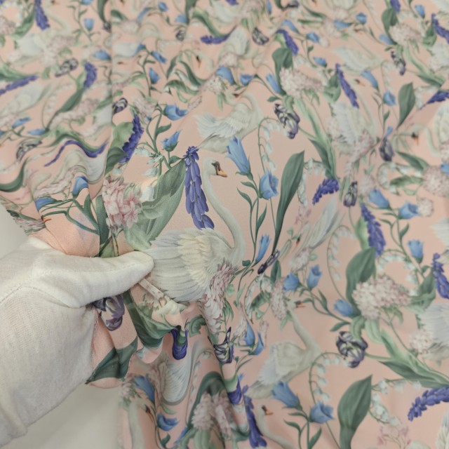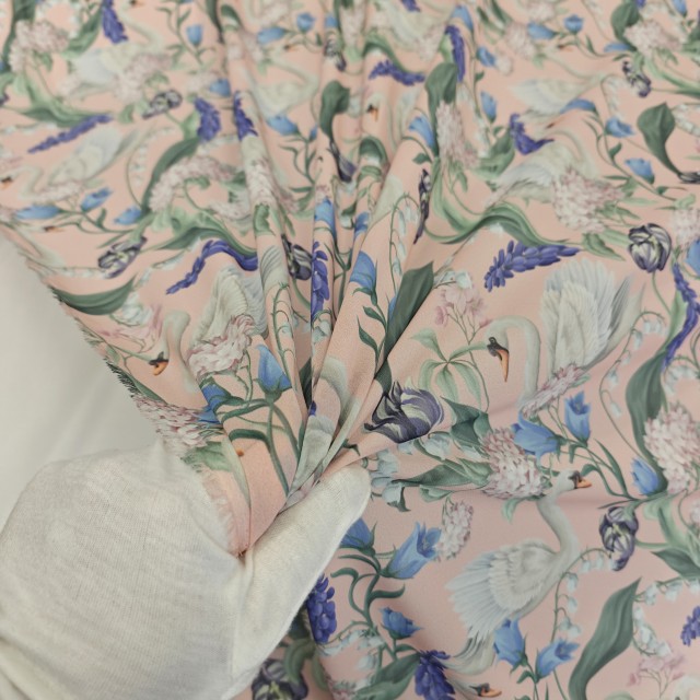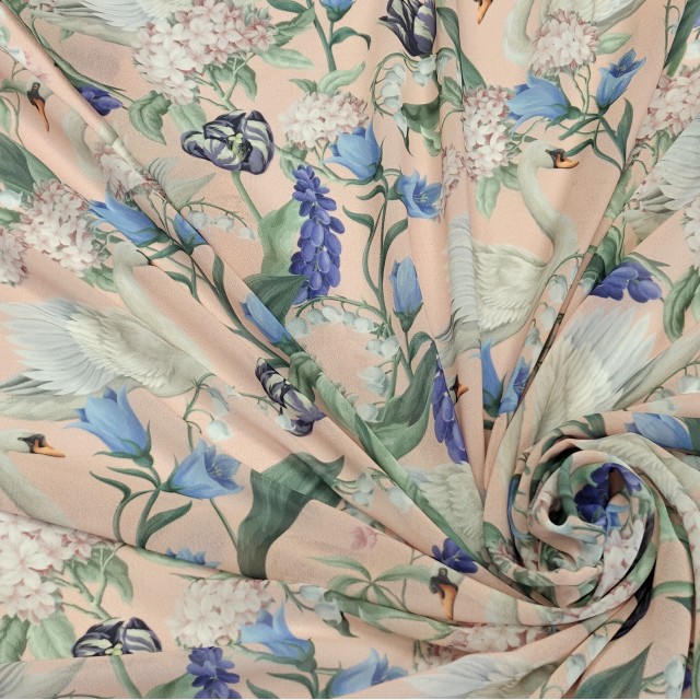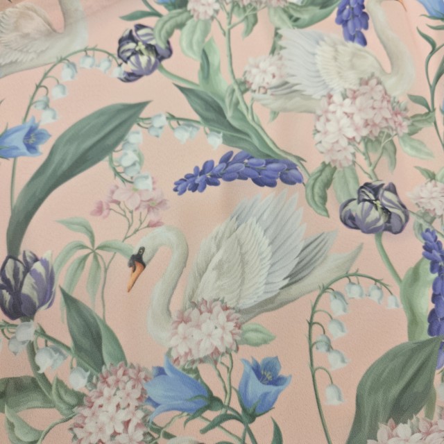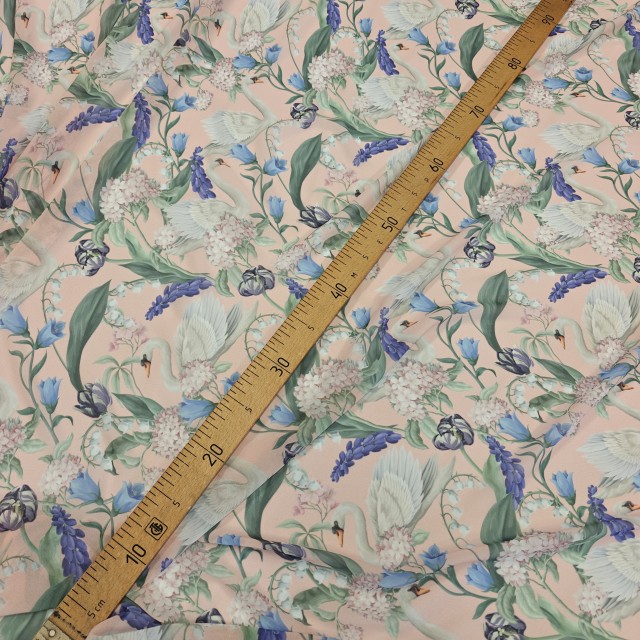 • Шифон Romy с цветочным принтом и лебедем для пошива платьев